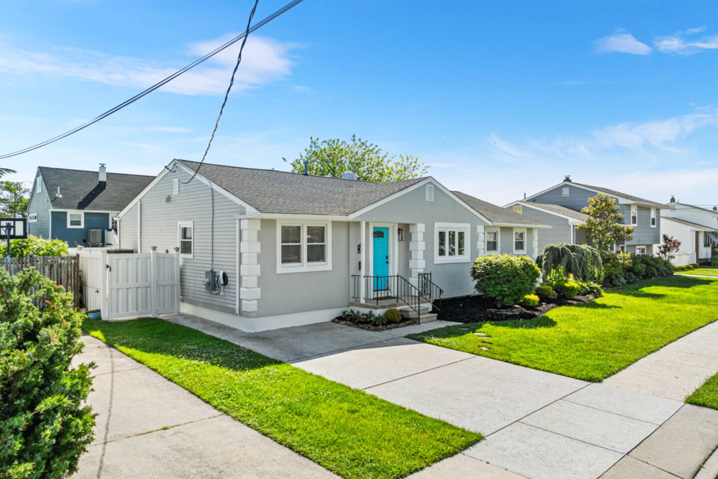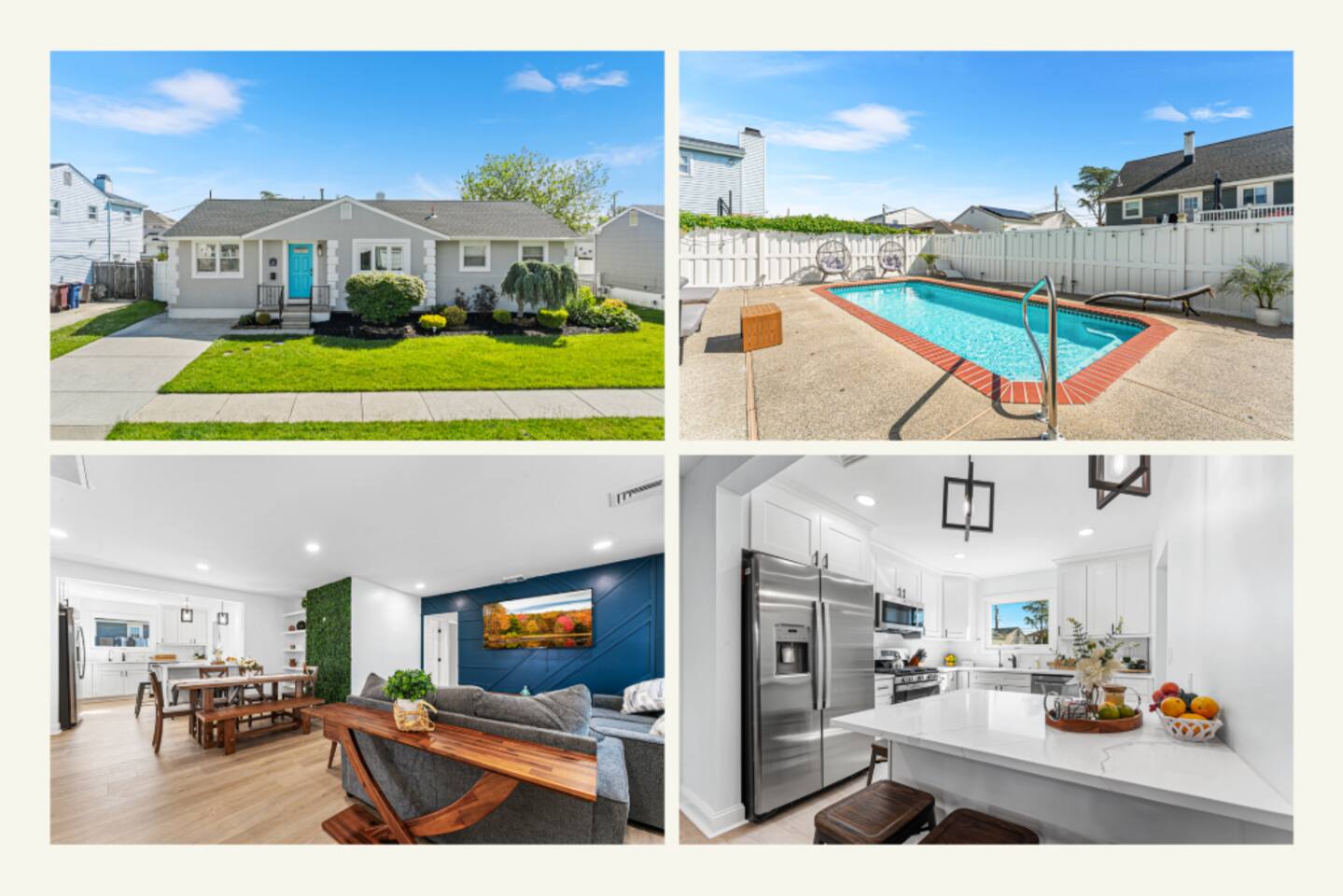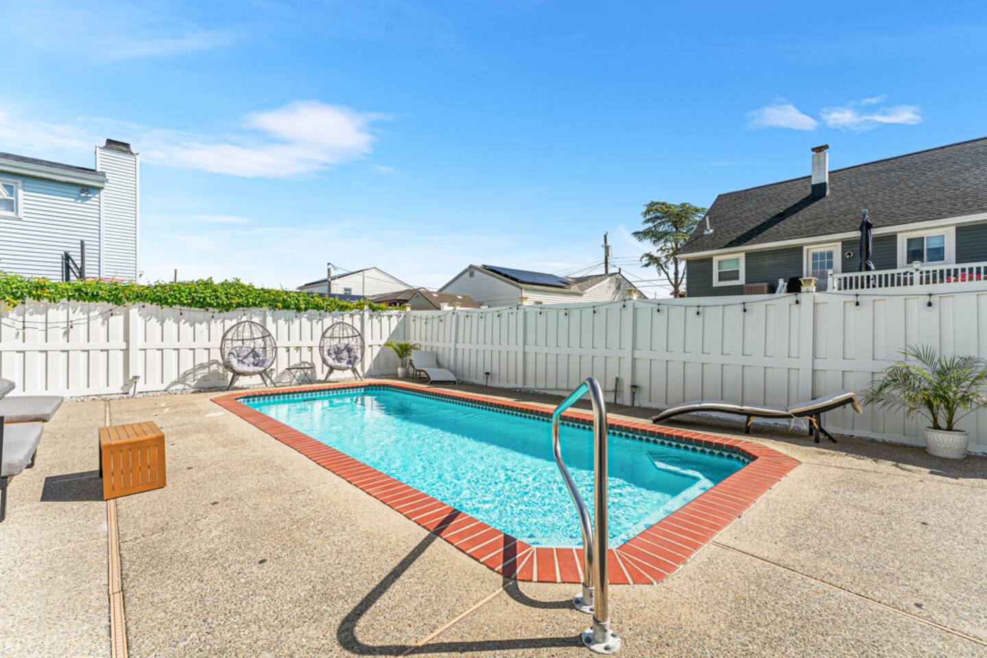 Our beautiful home is a short 6 block or 15 minute walk to the beach. On the way, you’ll pass by options for coffee, brunch, ice cream, sundries or an evening meal. Our home has six bedrooms and can comfortably fit multiple families with children. When you enter the home, you’ll find a spacious living room with a large seating area and 65” flat screen television. This living room is open to the masterfully renovated dining room and kitchen. The kitchen has brand new cabinets, finishes and appliances, filled with kitchen cooking necessities. Past the kitchen, you’ll find a laundry room with a full-sized washer and dryer and entrance to the backyard pool area. Two of the bedrooms are located directly to the left of the living area – one with a queen-sized bed and dresser and the second with a bunk bed and additional queen-sized bed. On the opposite side of the home, you’ll find three additional bedrooms and a beautifully refinished hallway bathroom. At right rear of the home, you’ll find the primary suite with a full bathroom, walk-in closet and an additional entrance to the pool area. The backyard hosts a large saltwater pool (heating is an additional charge). The pool is about five feet deep at its deepest and does not currently have a toddler fence. **Optional pool heat is available for an additional daily charge, subject to availability. Our pool will remain open until at least October 7, 2025** In the backyard you’ll also find an outdoor dining table with umbrella, gas grill (gas supplied by guest) and a custom bar area. The left side of the home contains a complimentary Tesla charger and we provide a J1772 adapter at the home for other EV charging. The right side of the home has a small storage shed with four beach chairs, an umbrella and a small wagon. **As of 08/01/2024 we now have a 6 person golf cart available for rent at the property through a partner company**