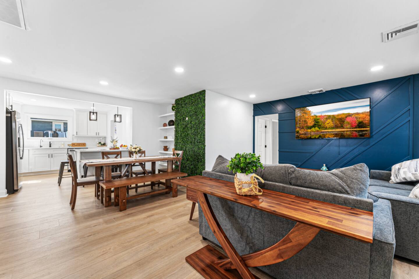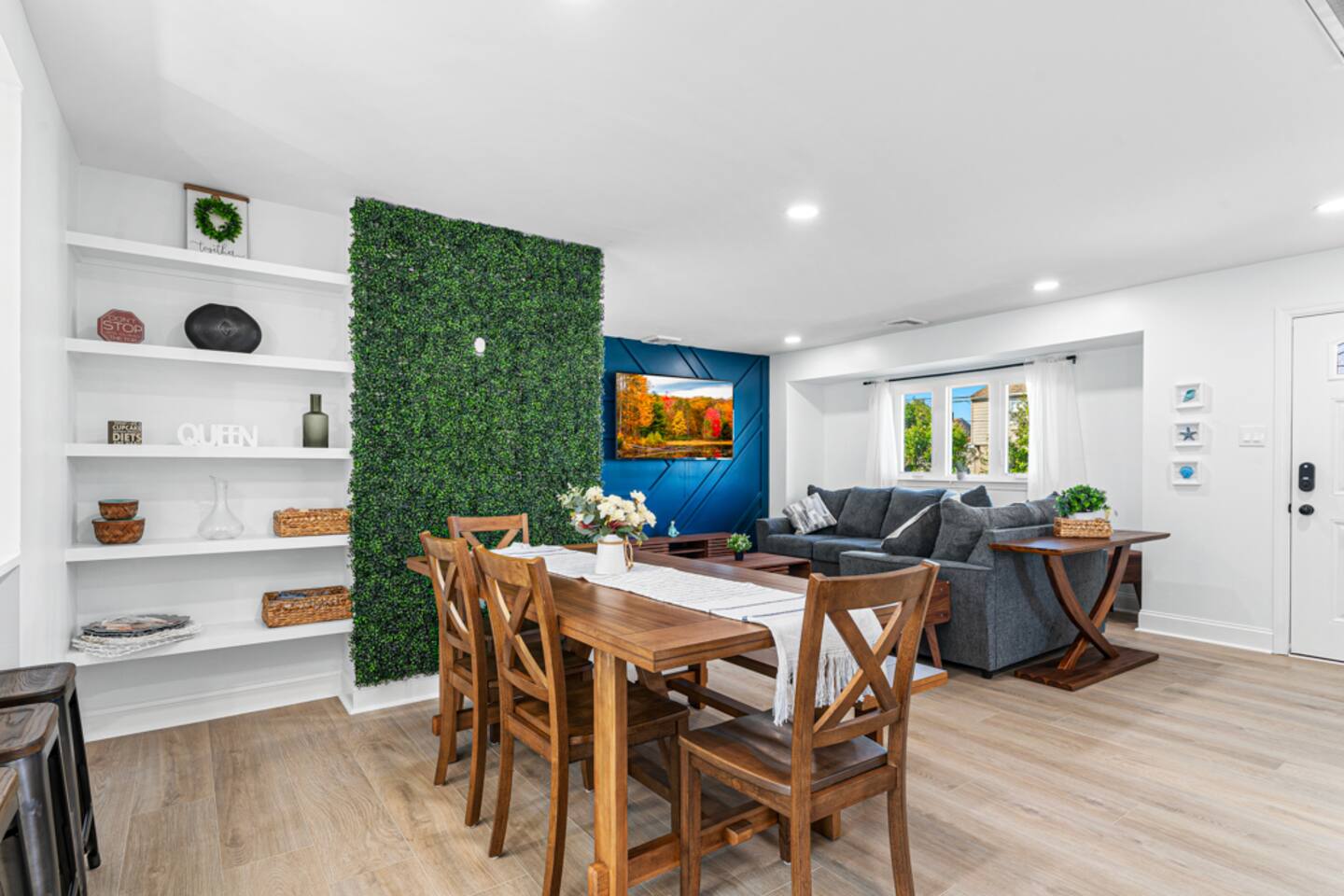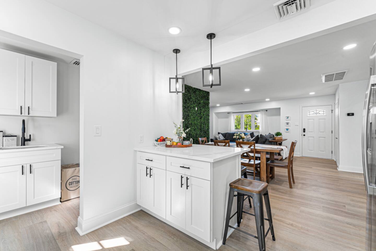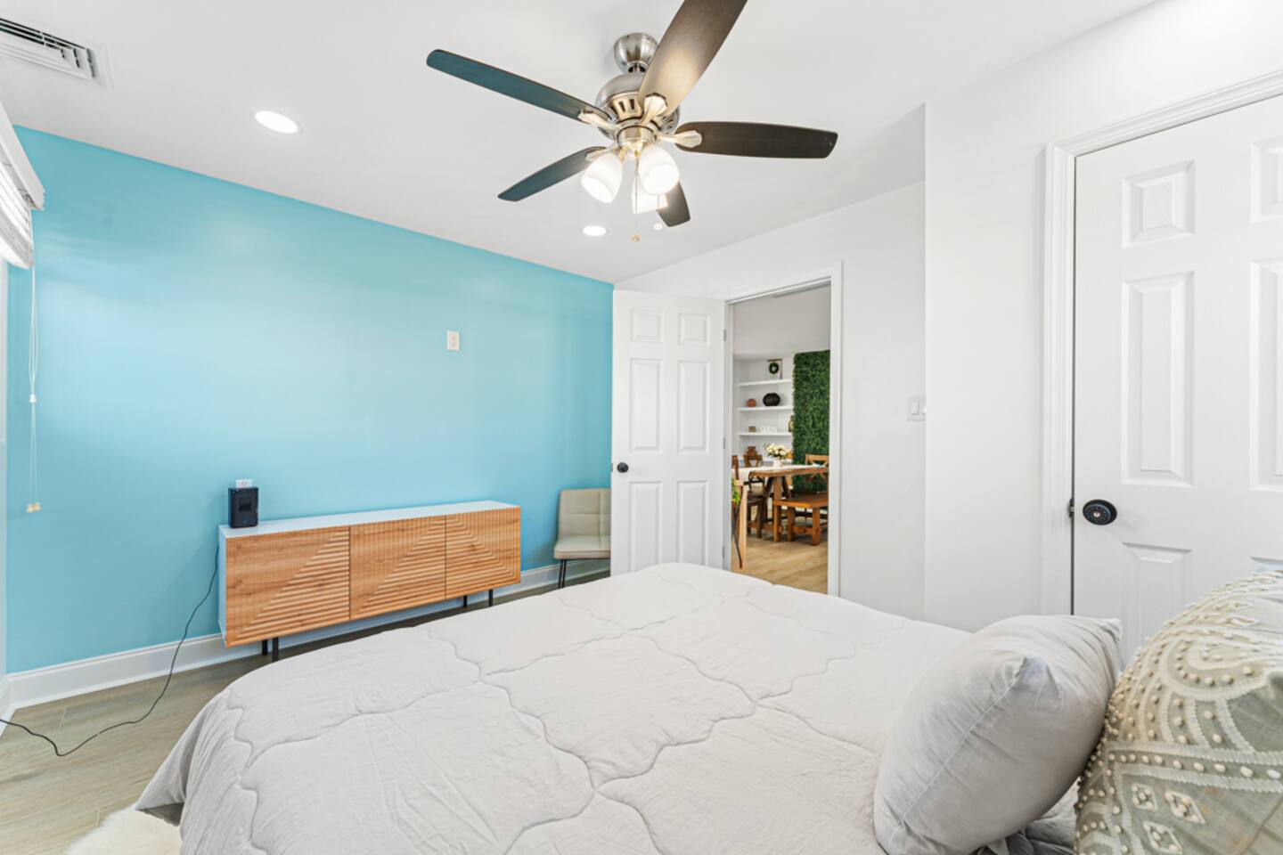 Our beautiful home is a short 6 block or 15 minute walk to the beach. On the way, you’ll pass by options for coffee, brunch, ice cream, sundries or an evening meal. Our home has six bedrooms and can comfortably fit multiple families with children. When you enter the home, you’ll find a spacious living room with a large seating area and 65” flat screen television. This living room is open to the masterfully renovated dining room and kitchen. The kitchen has brand new cabinets, finishes and appliances, filled with kitchen cooking necessities. Past the kitchen, you’ll find a laundry room with a full-sized washer and dryer and entrance to the backyard pool area. Two of the bedrooms are located directly to the left of the living area – one with a queen-sized bed and dresser and the second with a bunk bed and additional queen-sized bed. On the opposite side of the home, you’ll find three additional bedrooms and a beautifully refinished hallway bathroom. At right rear of the home, you’ll find the primary suite with a full bathroom, walk-in closet and an additional entrance to the pool area. The backyard hosts a large saltwater pool (heating is an additional charge). The pool is about five feet deep at its deepest and does not currently have a toddler fence. **Optional pool heat is available for an additional daily charge, subject to availability. Our pool will remain open until at least October 7, 2025** In the backyard you’ll also find an outdoor dining table with umbrella, gas grill (gas supplied by guest) and a custom bar area. The left side of the home contains a complimentary Tesla charger and we provide a J1772 adapter at the home for other EV charging. The right side of the home has a small storage shed with four beach chairs, an umbrella and a small wagon. **As of 08/01/2024 we now have a 6 person golf cart available for rent at the property through a partner company**